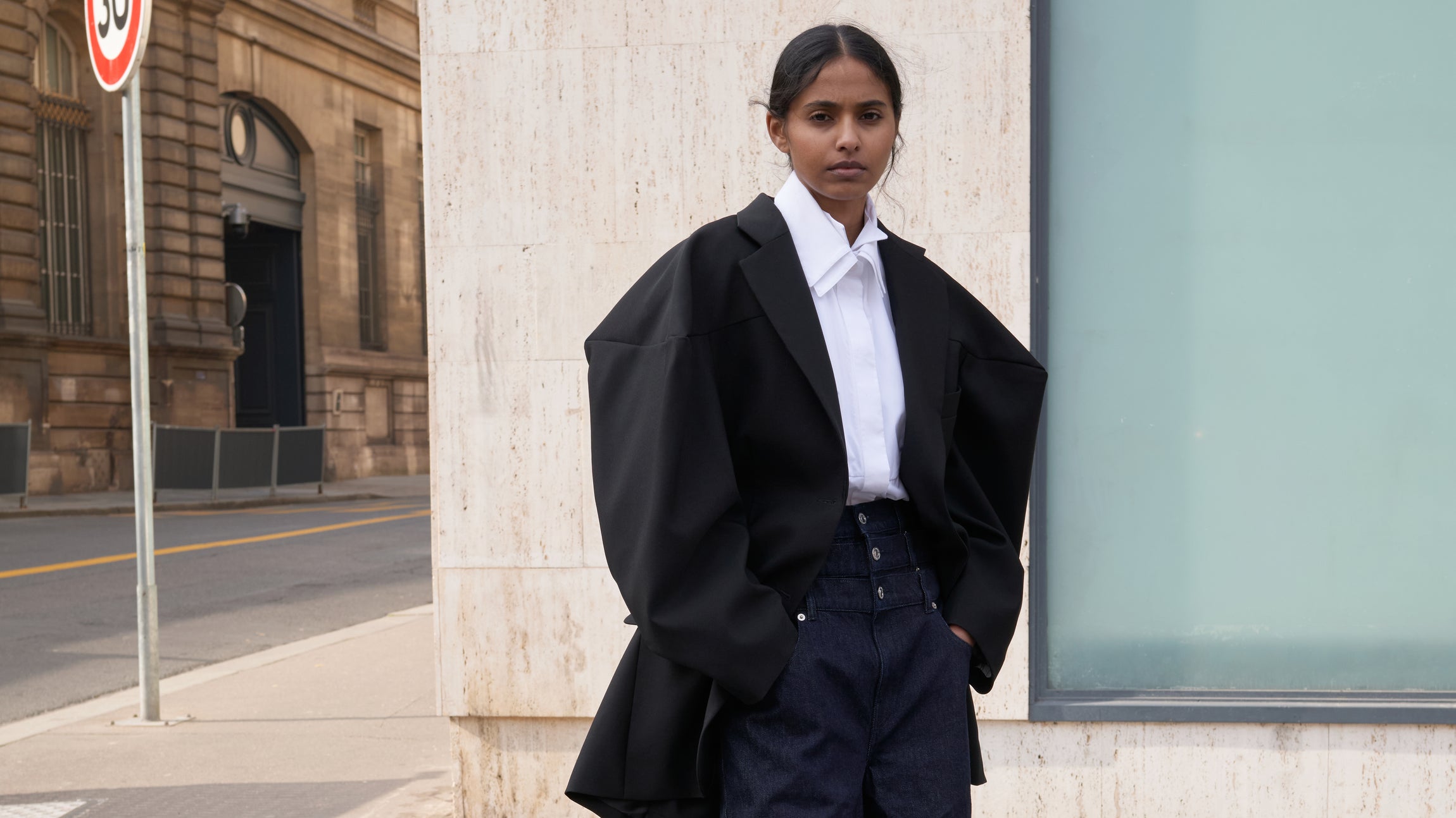 Unconventional elegance finds a new vocabulary in this collection. The precision in pattern-making and an architect’s approach to seams shape bold, confident forms. Tailored balloon trousers, cut in Japanese tuxedo wool, embody architectural structure, while their denim counterpart introduces ease without relinquishing refinement. White ruffled collars offer both structure and sensuality, a dialogue between strength and delicacy.