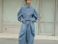 The jeans are a refined staple with a couture-inspired abstract twist, featuring sculptural square-shaped detailing.