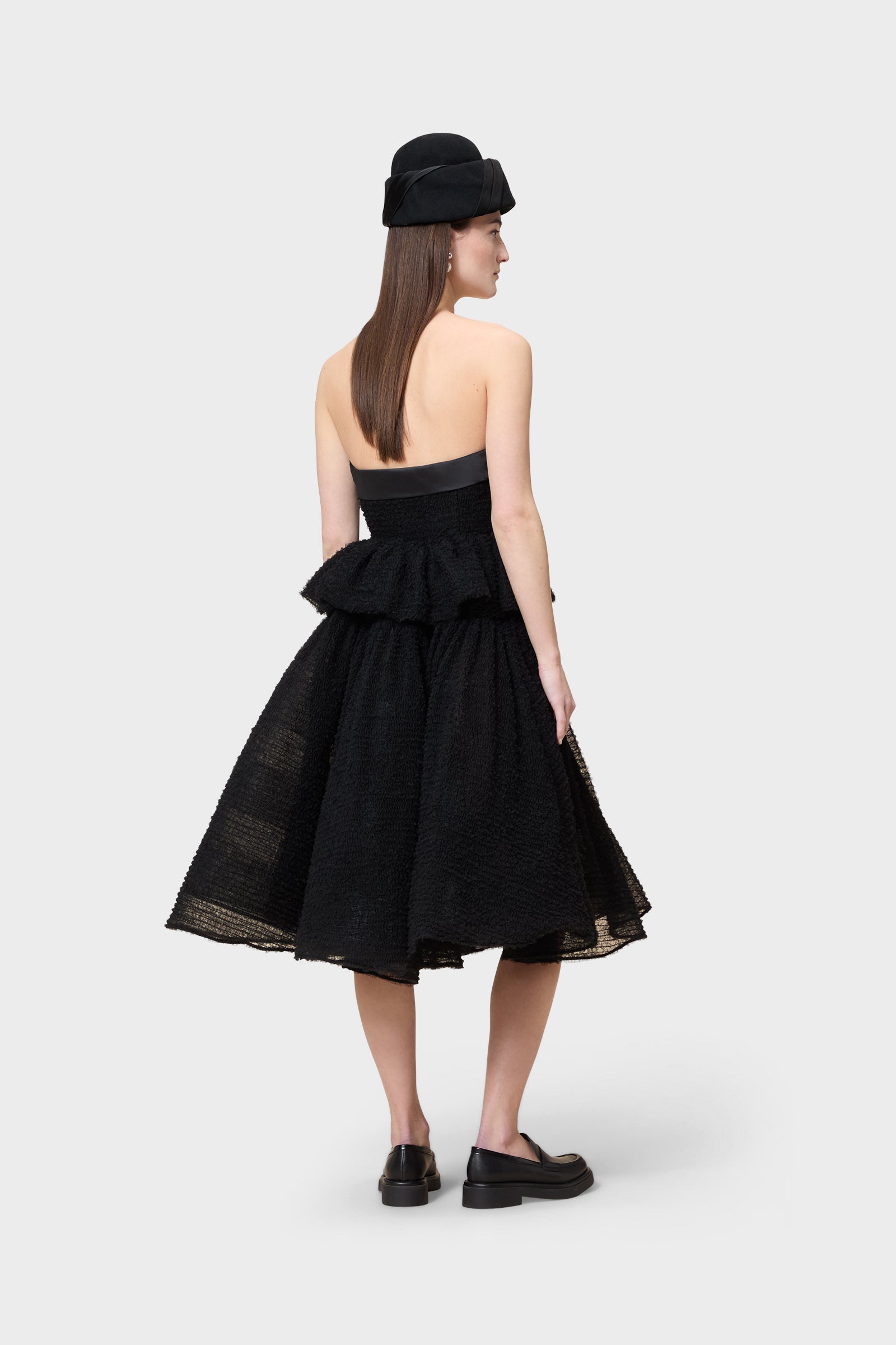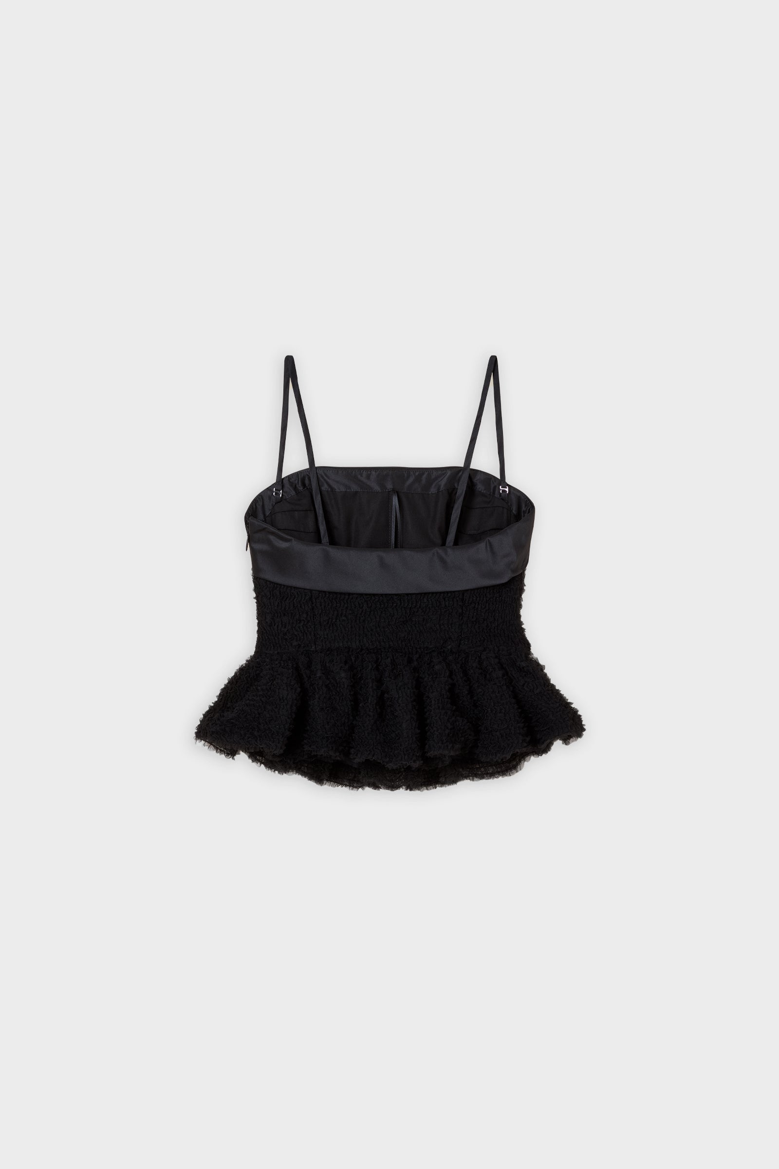 Inspired by the tulle from the ‘Late Stage Capitalism Waltz’ Haute Couture collection, the top features hand crafted tulle ruffles for a feminine texture.