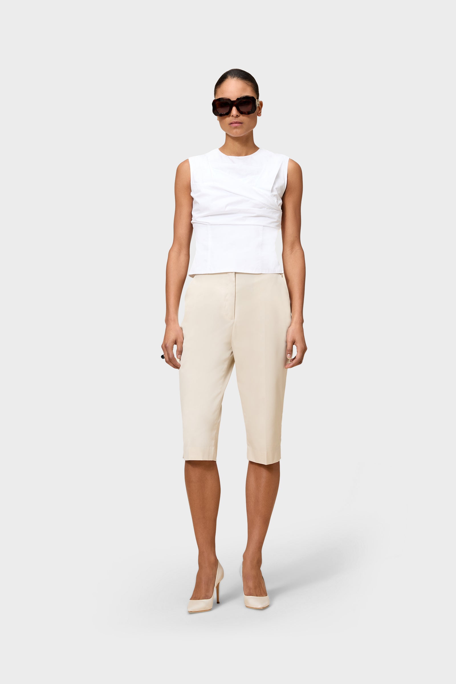 Deze hoog getailleerde capribroek is gemaakt van gabardine en biedt een getailleerde pasvorm en tijdloze elegantie.