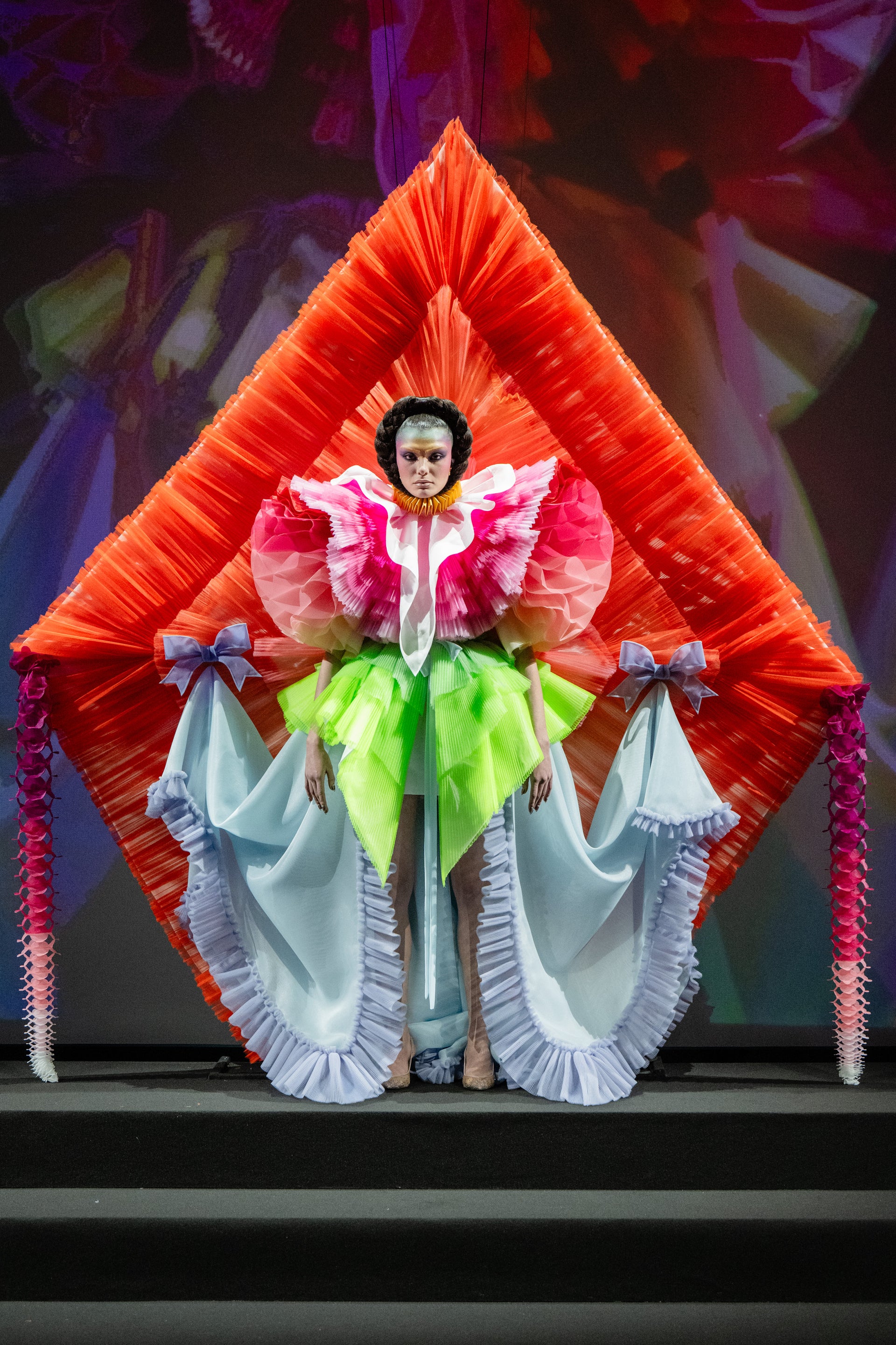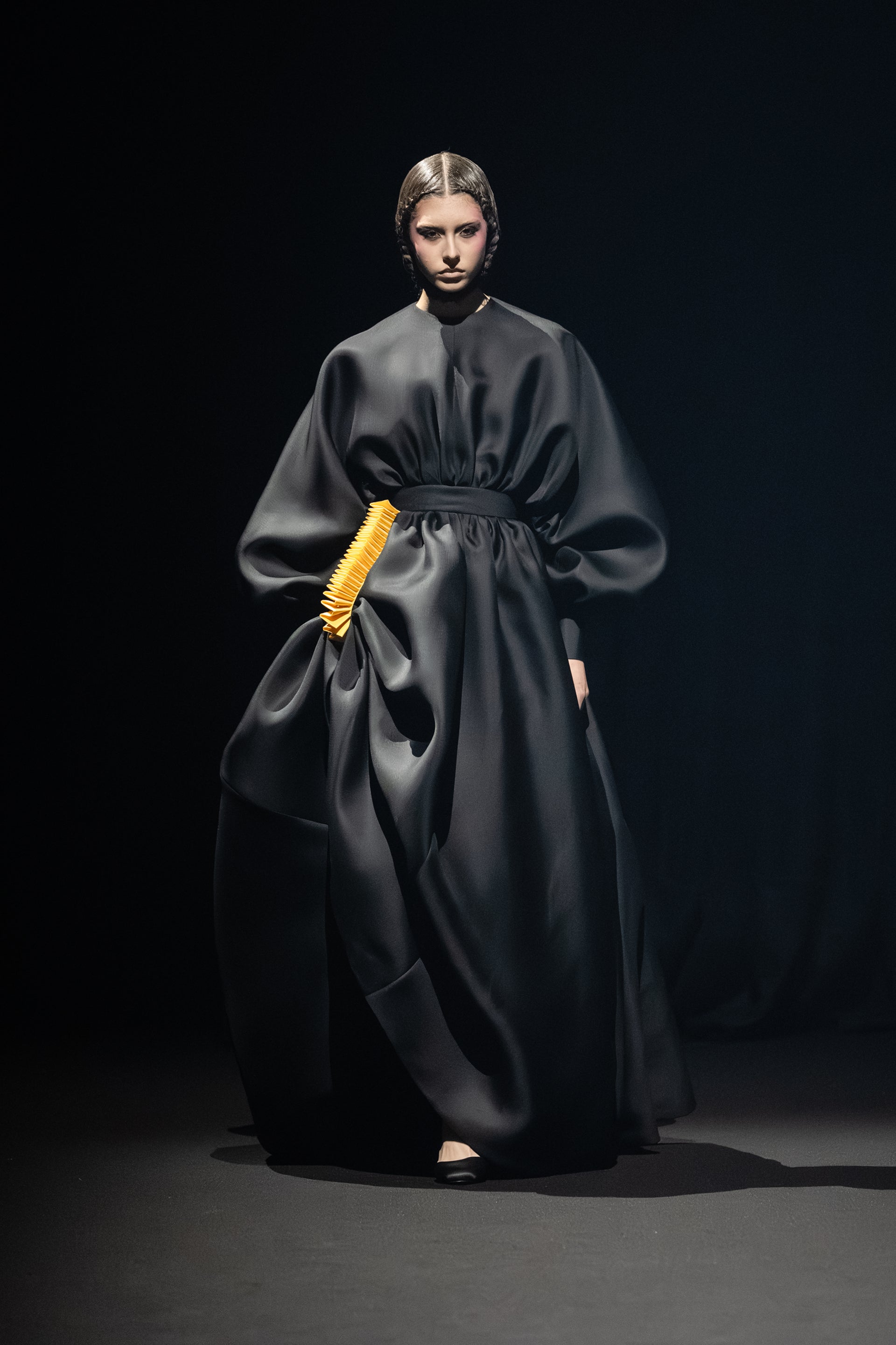 As the collection unfolds, each look navigates the space between concept and construction. Couture craftsmanship meets inventive engineering in pieces that are playful and experimental, merging theatricality with practicality.