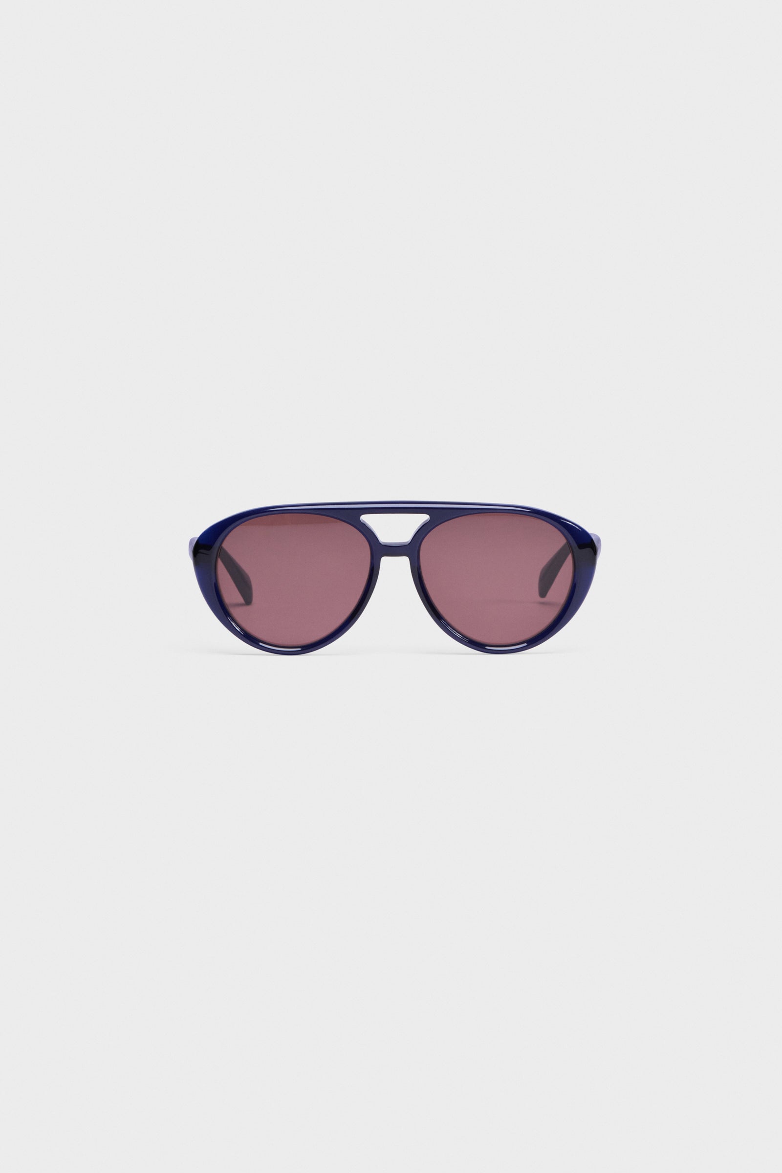 The Aviator Sunglasses combine a sculpted black acetate frame with sharp bevel detailing for a bold take on a modern classic.