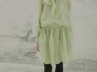 The dress features the signature bow and sculptural circular details, bringing a touch of the Haute Couture collection 'Haute Abstraction' to a timeless staple.