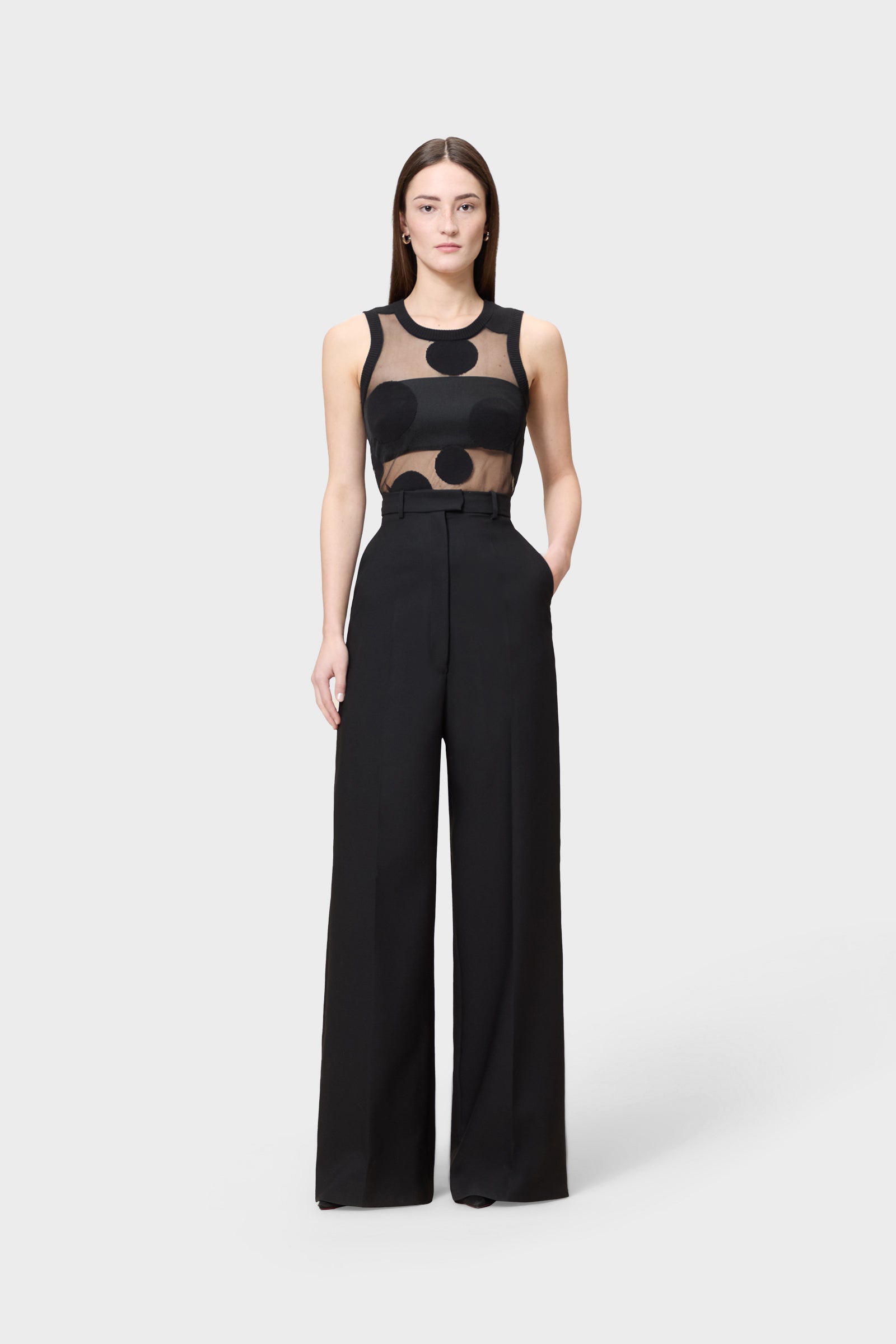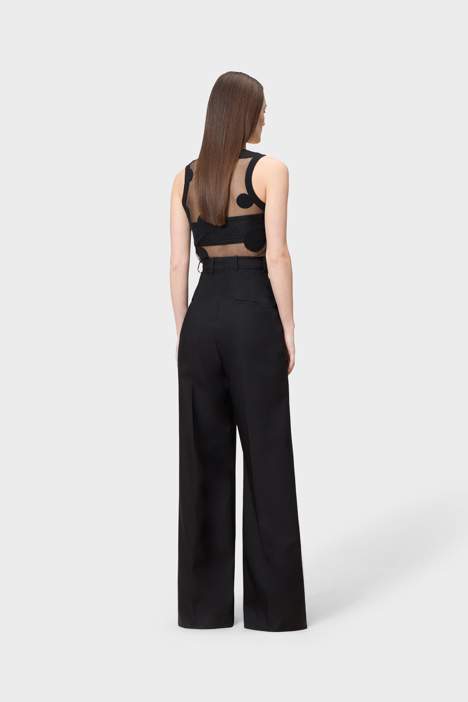 Crafted from wool, the super high waisted trousers offers a tailored fit and timeless elegance with a boning detail on the waist.